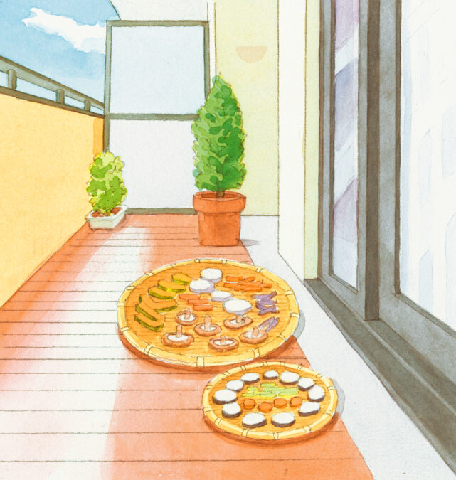イラストのように、乾燥野菜を自分で作成するのも素晴らしいと思います。