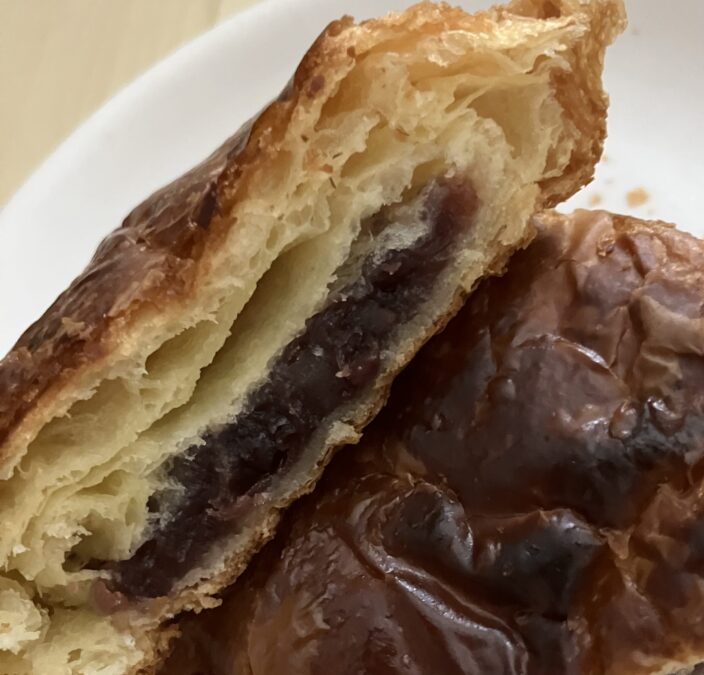 食べてみると、クロワッサン生地のパンと、やさしい甘さの粒あんが